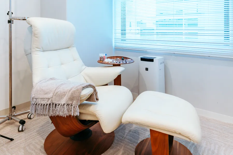 個室の点滴室もごゆっくりお過ごしいただけます。横浜駅直結で雨の日も濡れずに来院いただけます。どうぞお気軽にご来院ください。